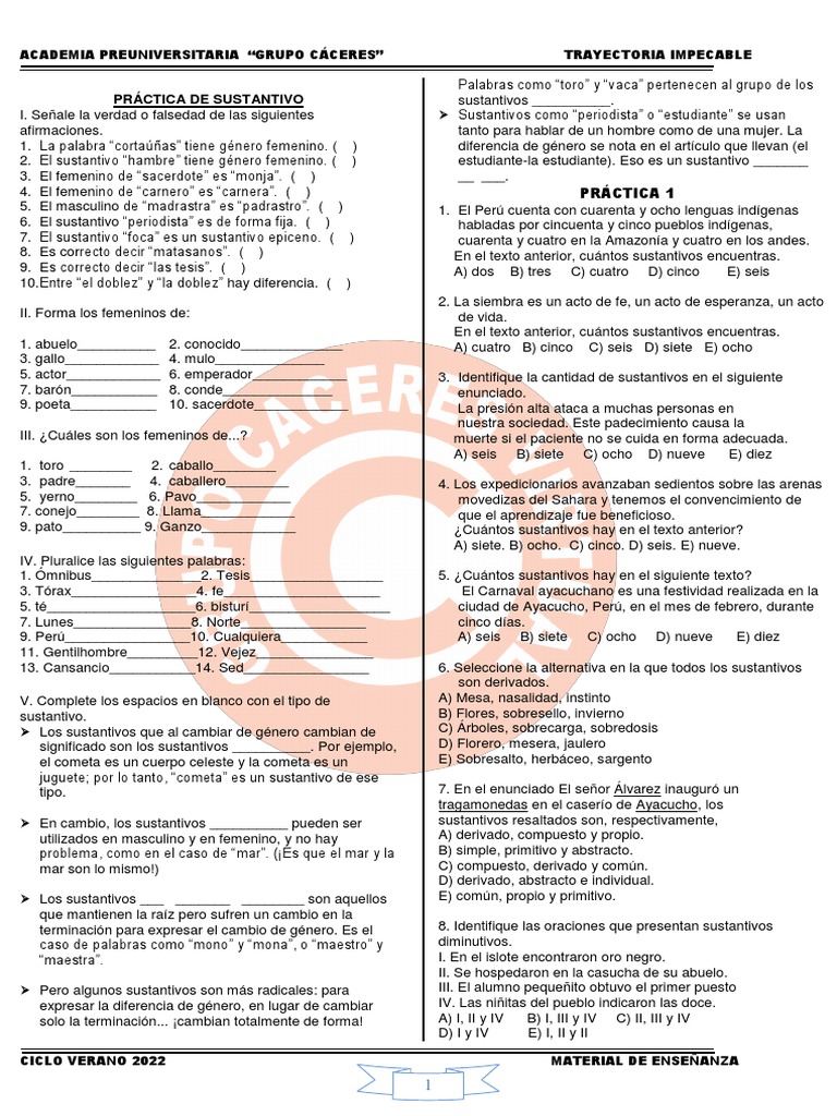 PRÁCTICA DE SUSTANTIVO sustantivos __________.