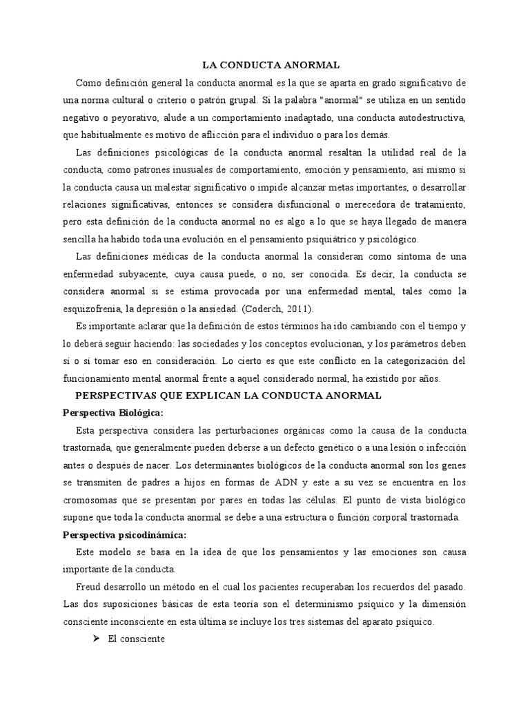 Para la comprensión de la conducta anormal totalmente necesario familiarizarse con la