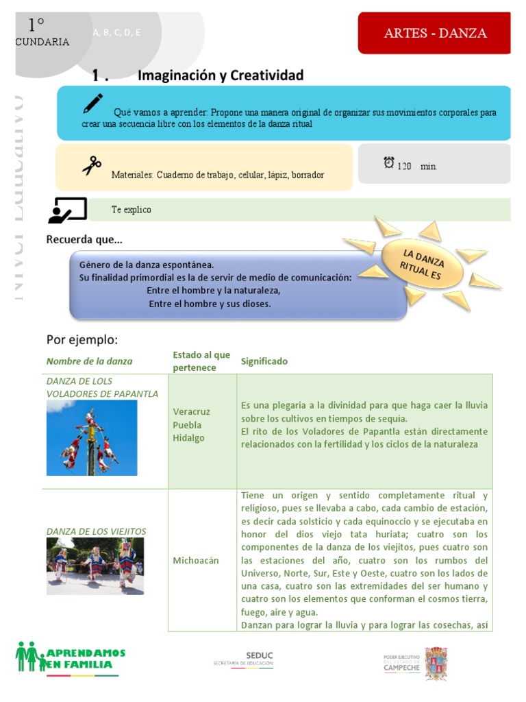 2. - De acuerdo a su significado que le asignaste a tu danza ritual, elabora un en listado de los