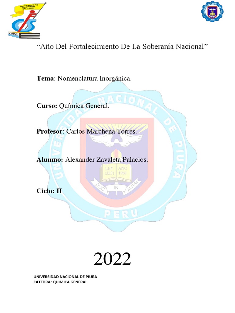 Tema: Nomenclatura Inorgánica.