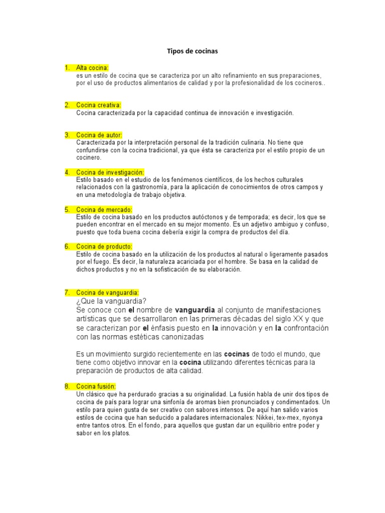 Tipos de cocinas
