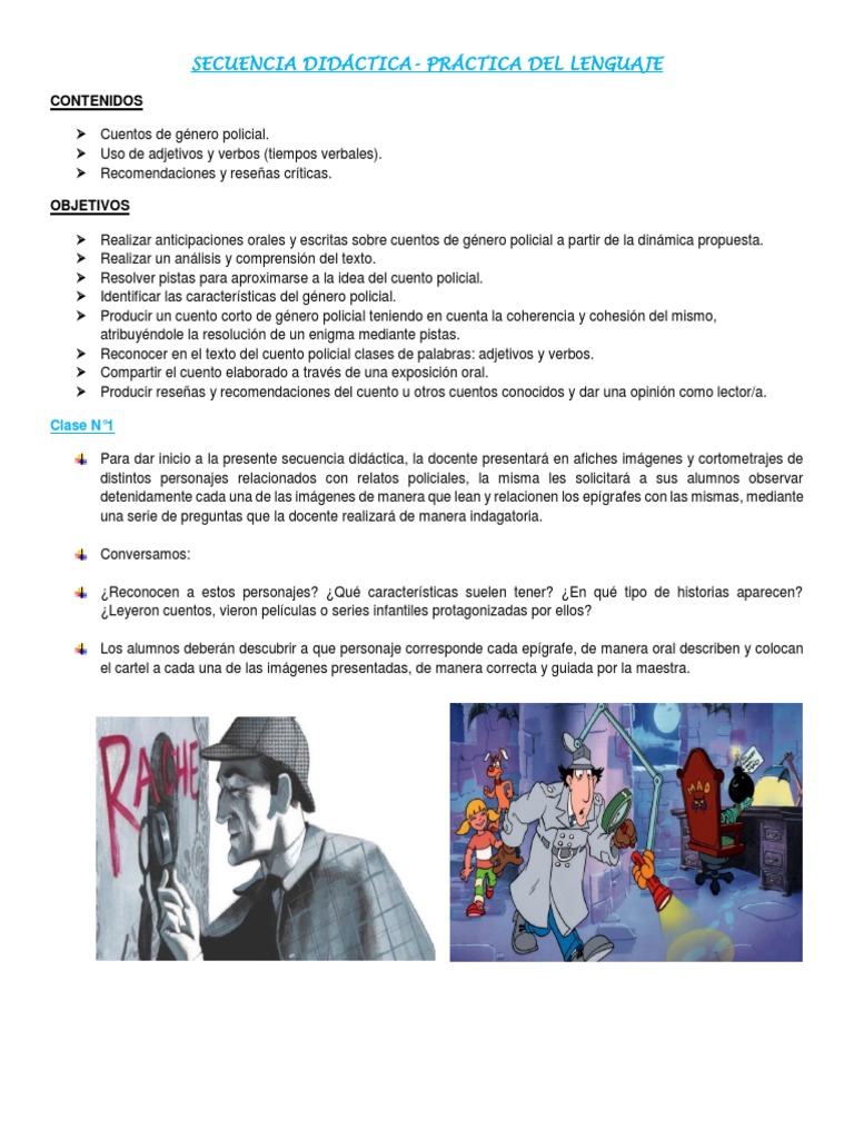 distintos personajes relacionados con relatos policiales, la misma les solicitará a sus alumnos observar