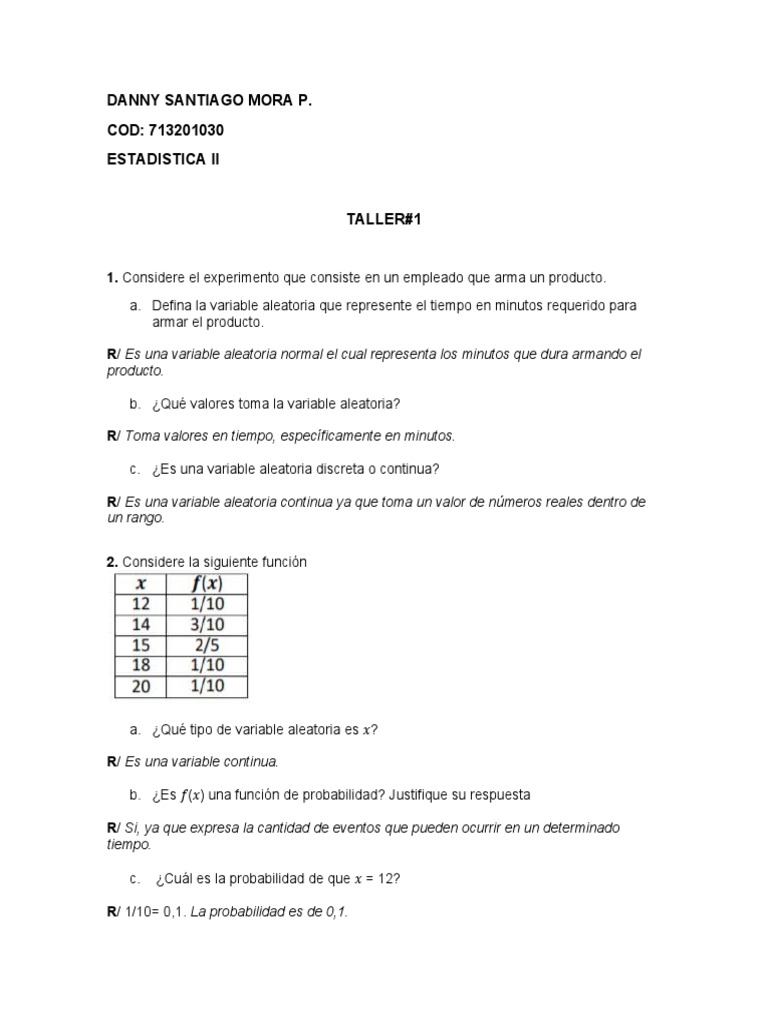 1. Considere el experimento que consiste en un empleado que arma un producto.