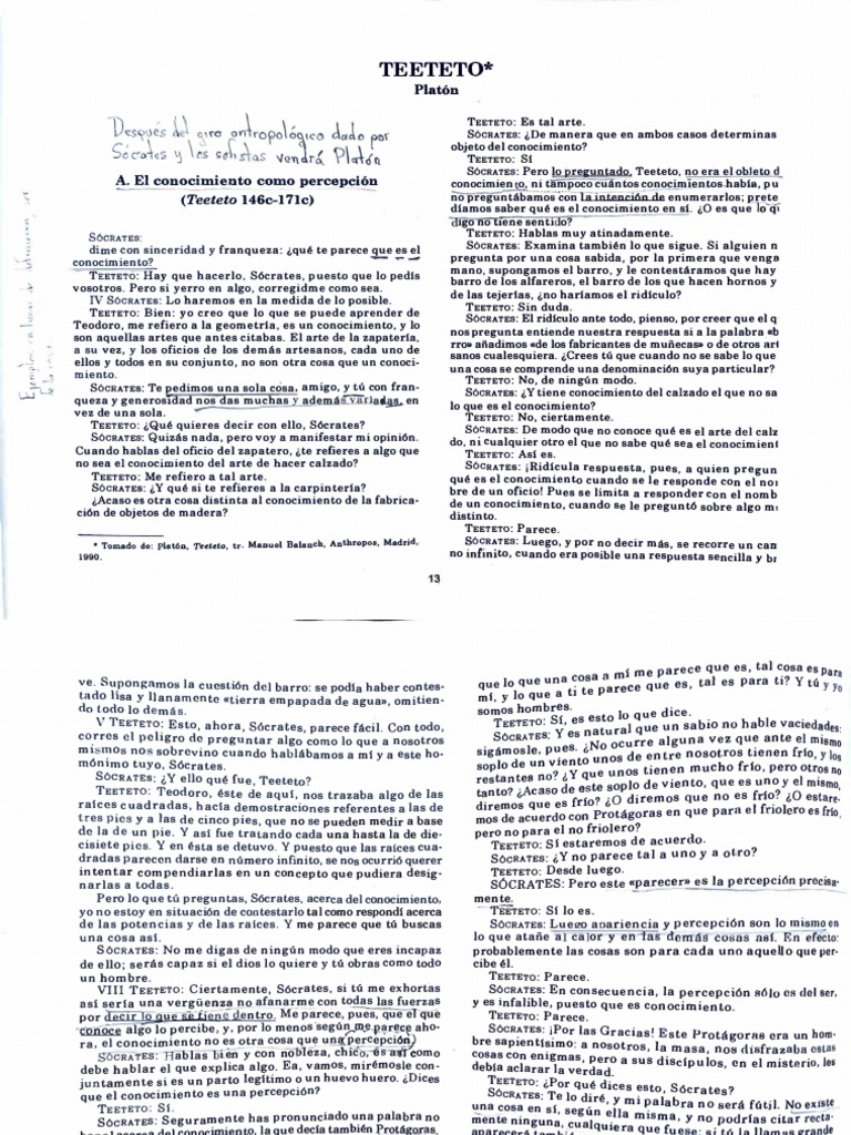 ella se origine será bueno y her el río, Teeteto, d1Jo ..