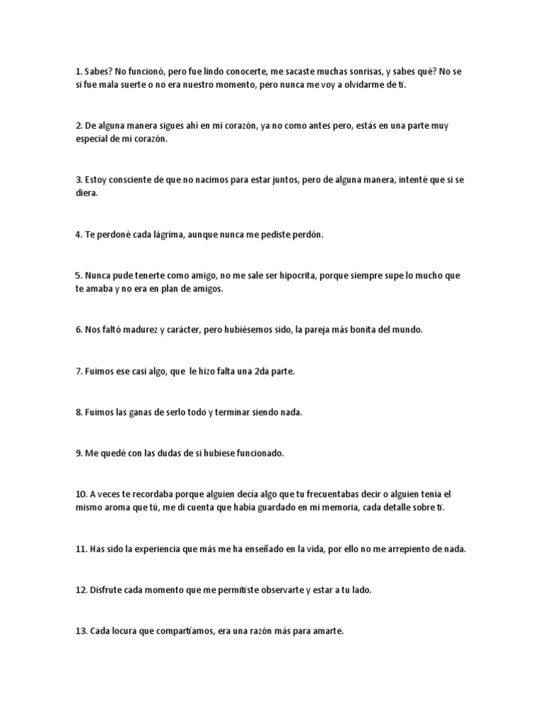11. Has sido la experiencia que más me ha enseñado en la vida, por ello no me arrepiento de nada.