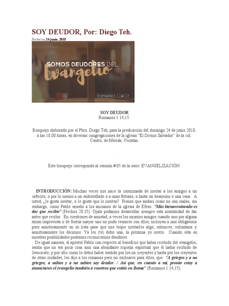 II.- DEUDA CON TODOS POR TENER EL EVANGELIO QUE ELLOS NO TIENEN.