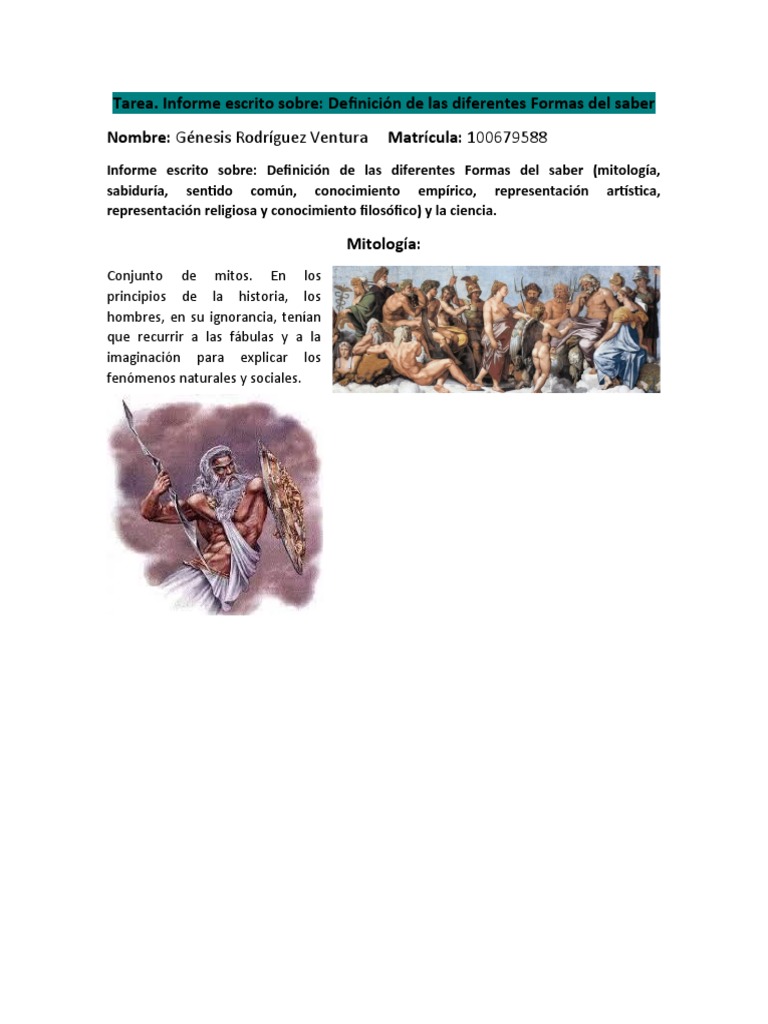 Informe escrito sobre: Definición de las diferentes Formas del saber (mitología,