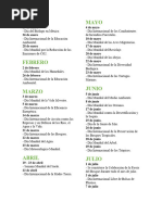 Marzo 1: Día Nacional del Reciclador y del Reciclaje. Marzo 23: Día Meteorológico Mundial.