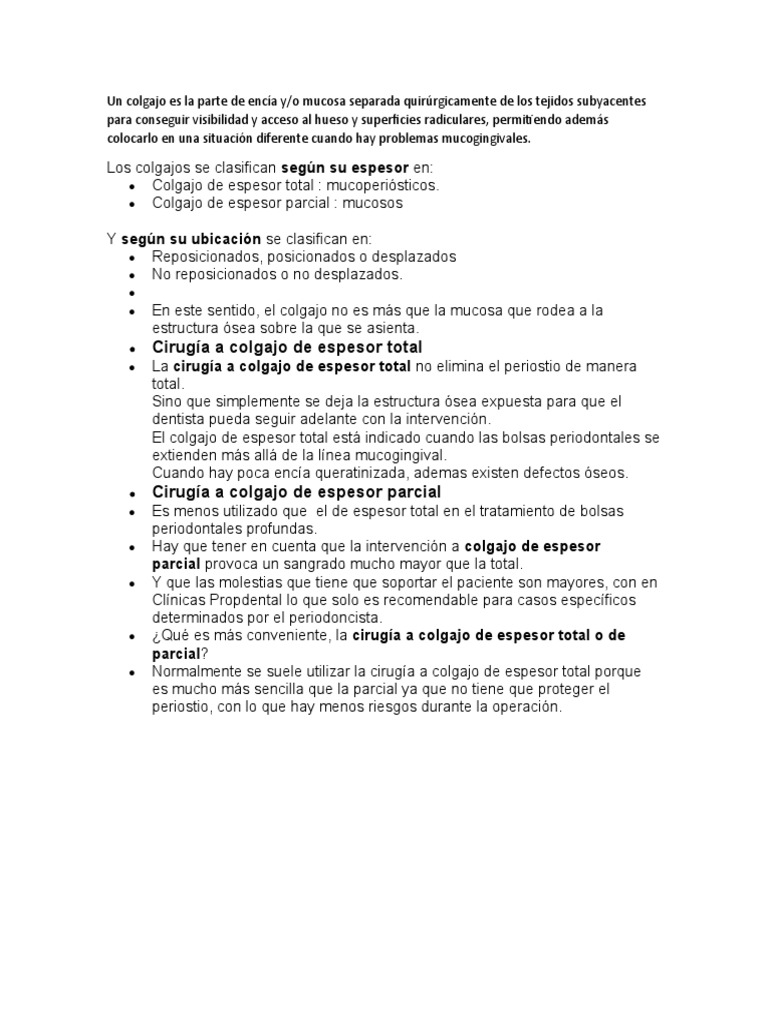 Un colgajo periodontal es la parte de encía o mucosa o ambos, que se