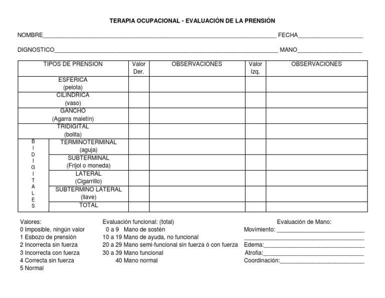 TERAPIA OCUPACIONAL - EVALUACIÓN DE LA PRENSIÓN
