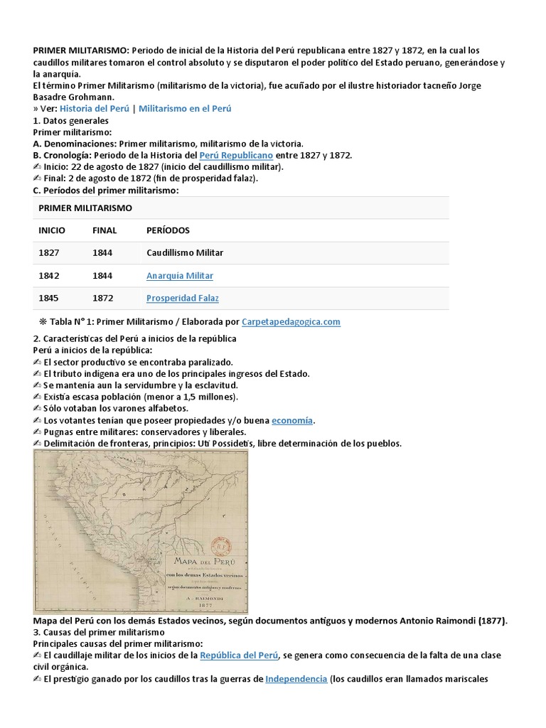 ❋ Tabla N° 1: Primer Militarismo / Elaborada por Carpetapedagogica.com