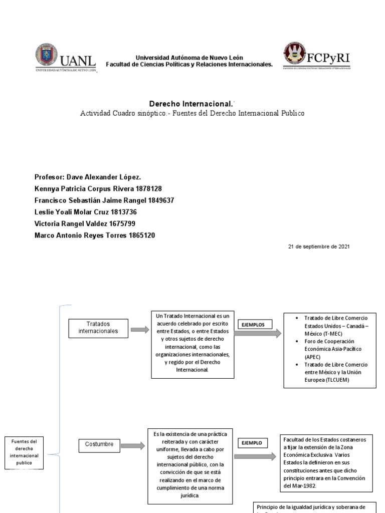 Actividad Cuadro sinóptico.- Fuentes del Derecho Internacional Publico