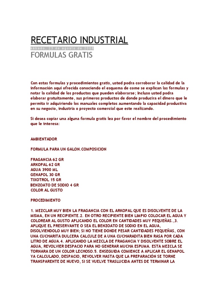 RECETARIO INDUSTRIAL