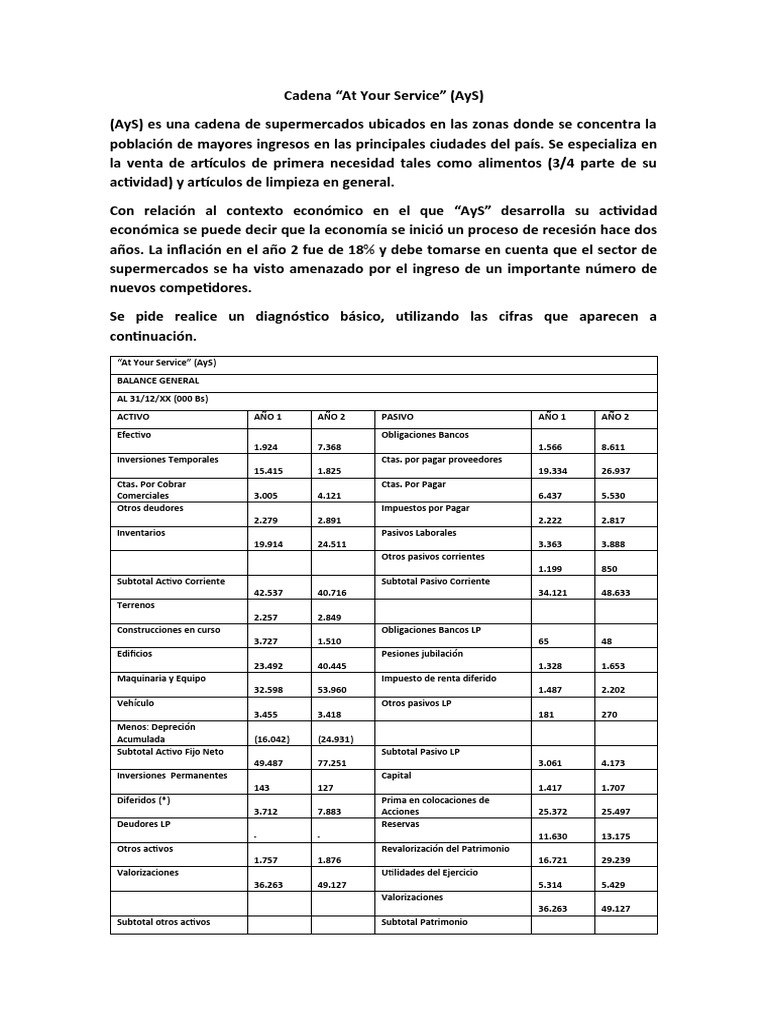 Se pide realice un diagnóstico básico, utilizando las cifras que aparecen a