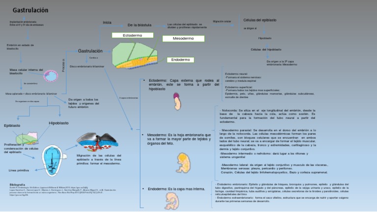- Endodermo extraembrionario: forma el saco vitelino, estructura que se encarga de nutrir y aportar oxigeno