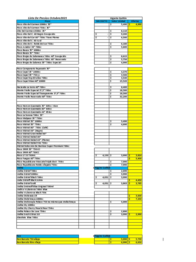 Lista De Precios Octubre2021 Gigante Quillón