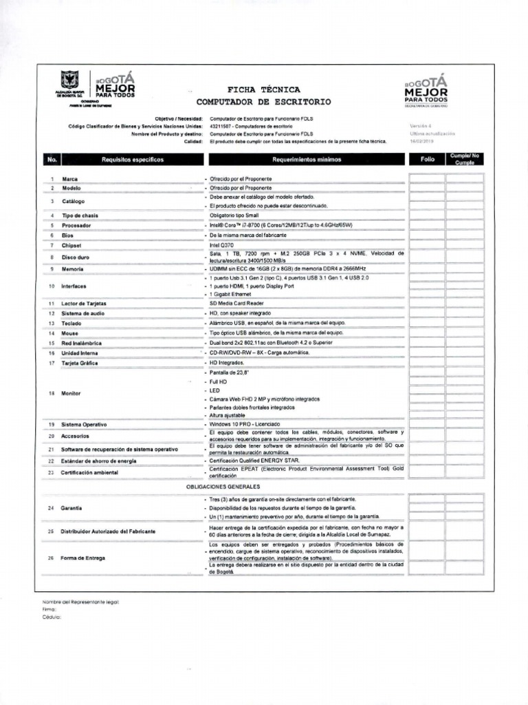Nombre del Producto y destino: Computador de Eilerifilli0 para Funcionario FOLS Ultima actuaTizacion