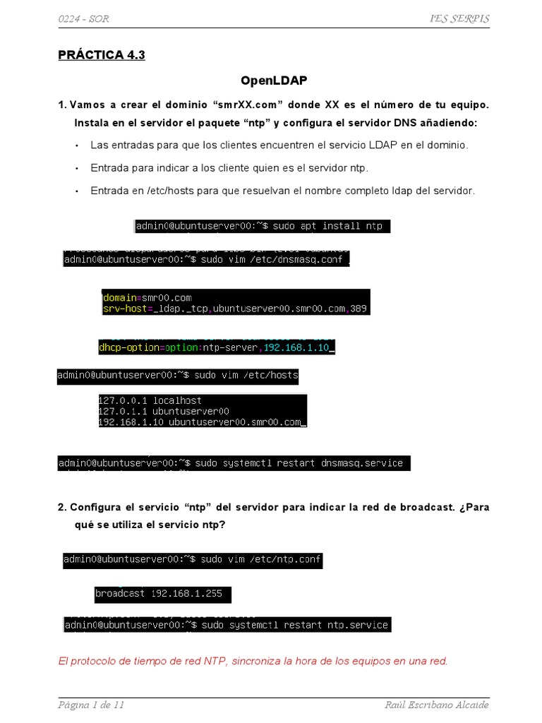 Instala en el servidor el paquete “ntp” y configura el servidor DNS añadiendo: