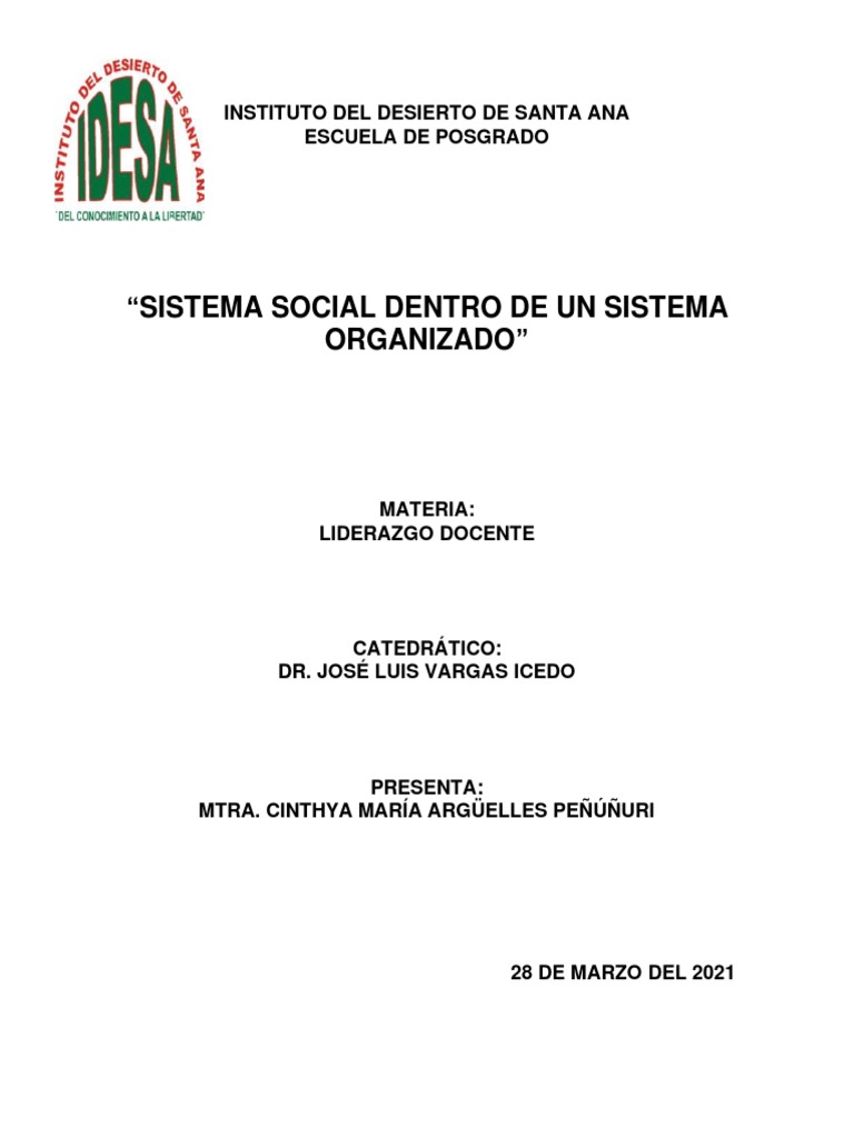 “SISTEMA SOCIAL DENTRO DE UN SISTEMA