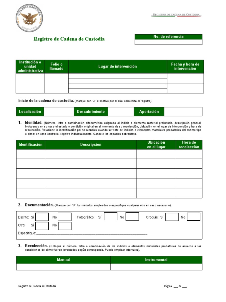 Inicio de la cadena de custodia. (Marque con “X” el motivo por el cual comienza el registro).