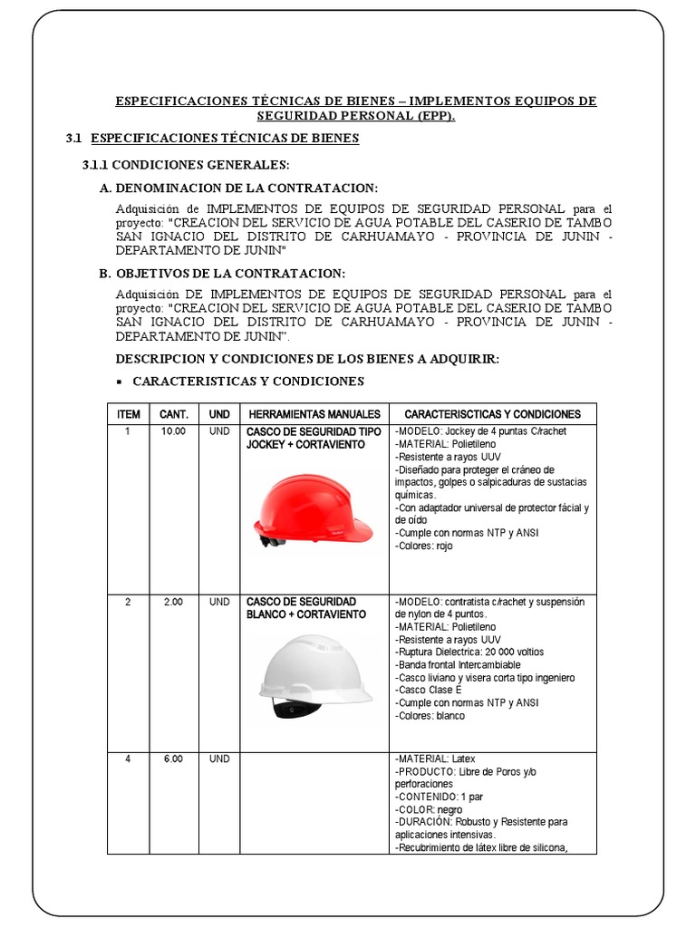 ESPECIFICACIONES TÉCNICAS DE BIENES – IMPLEMENTOS EQUIPOS DE