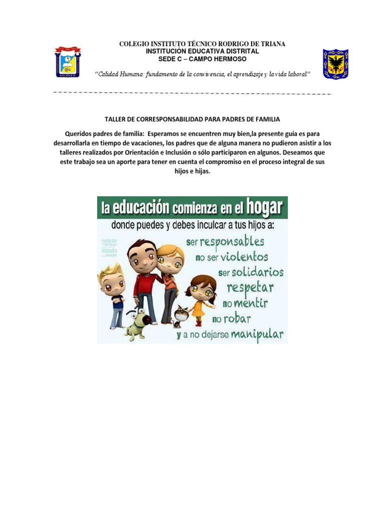 TALLER DE CORRESPONSABILIDAD PARA PADRES DE FAMILIA