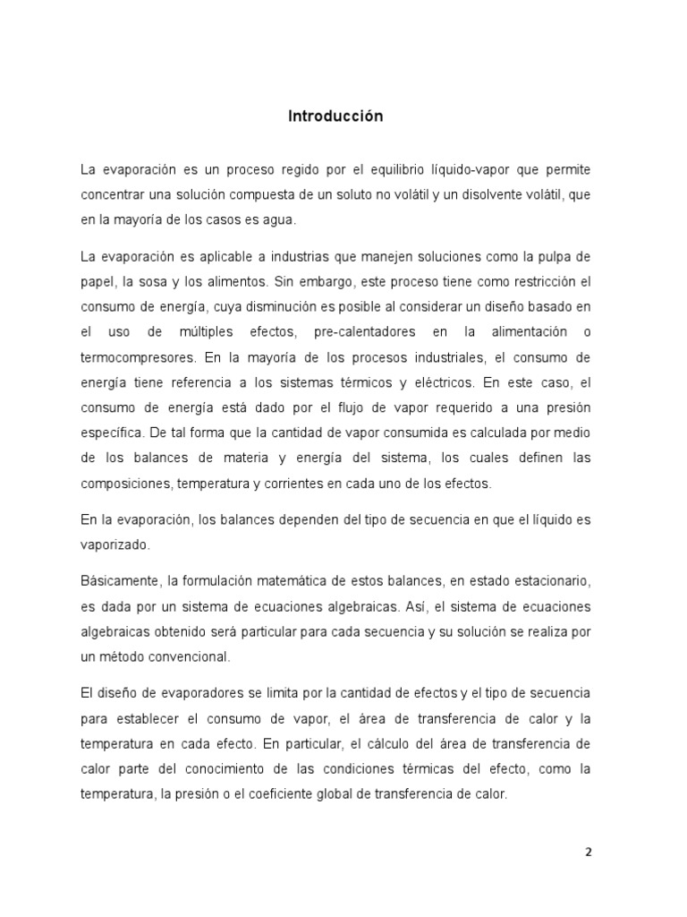 Determinar la solución al problema planteado de un sistema de evaporación de