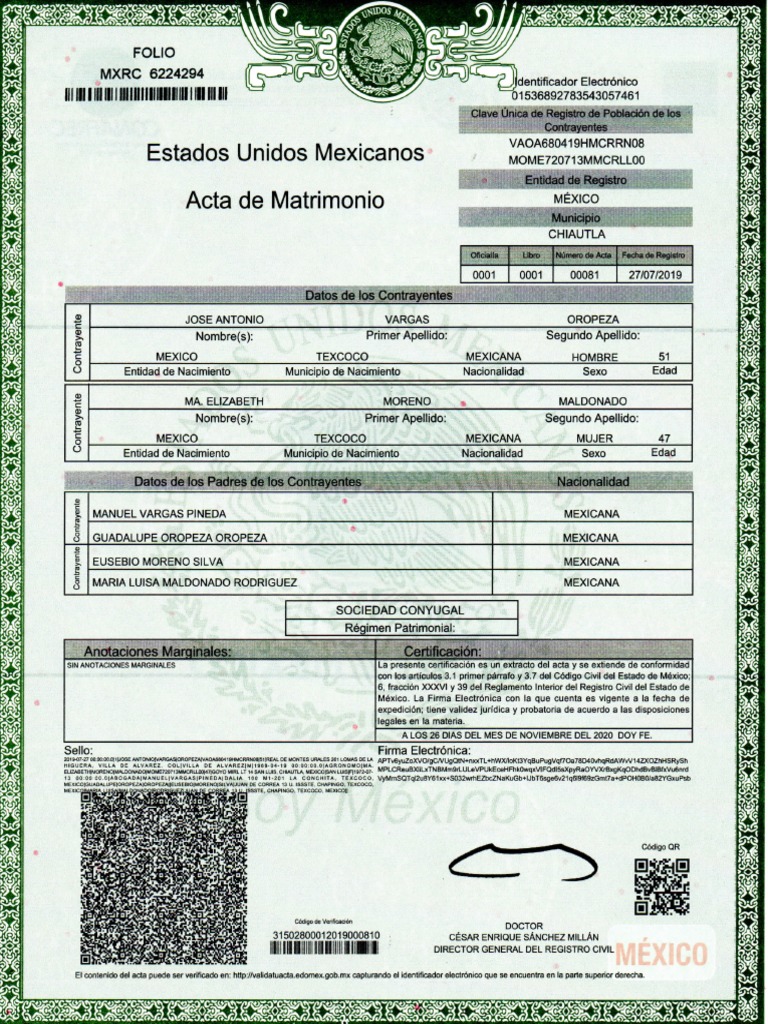 Acta de Matrimonio MÉXICO