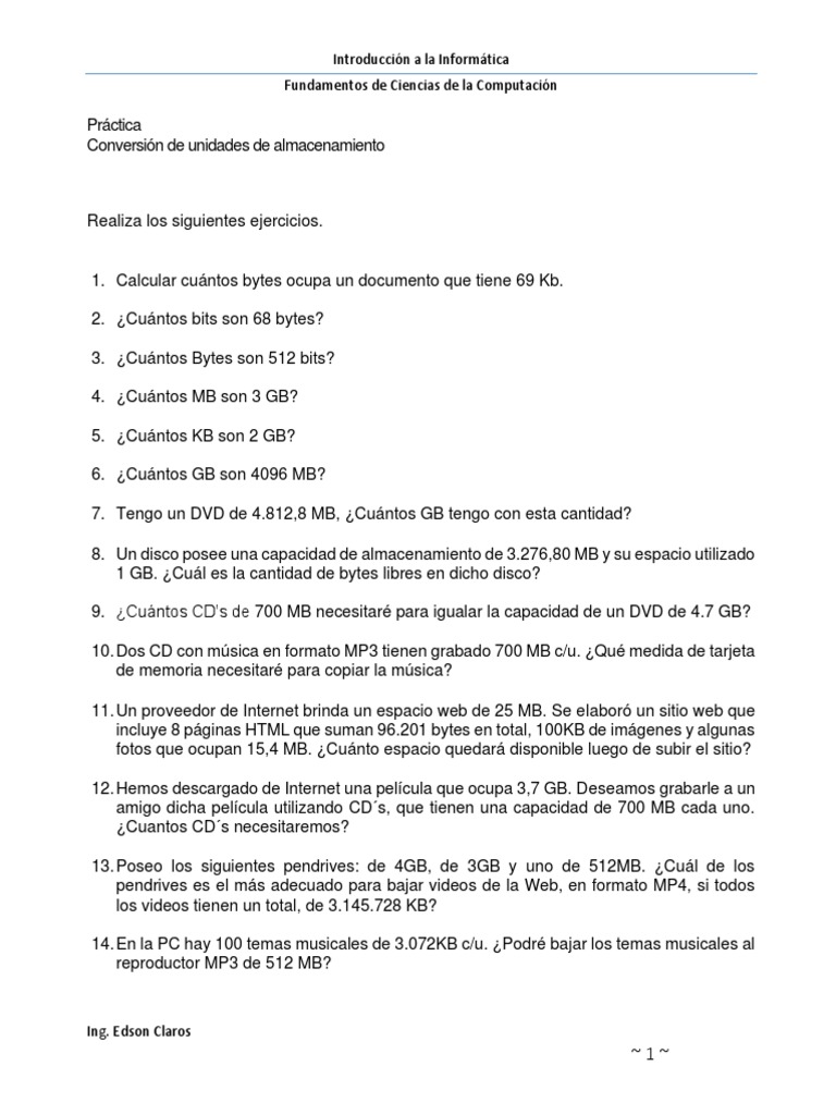 1. Calcular cuántos bytes ocupa un documento que tiene 69 Kb.