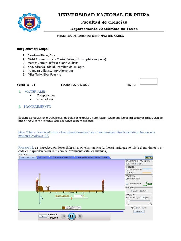Proceso 01: en introducción tienes diferentes objetos , aplicar la fuerza hasta que se inicie el movimiento en