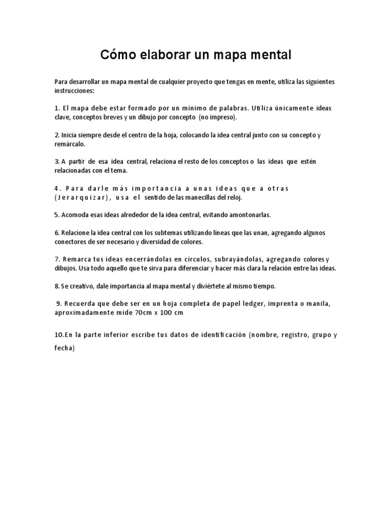 1. El mapa debe estar formado por un mínimo de palabras. Uti liza únicamente ideas