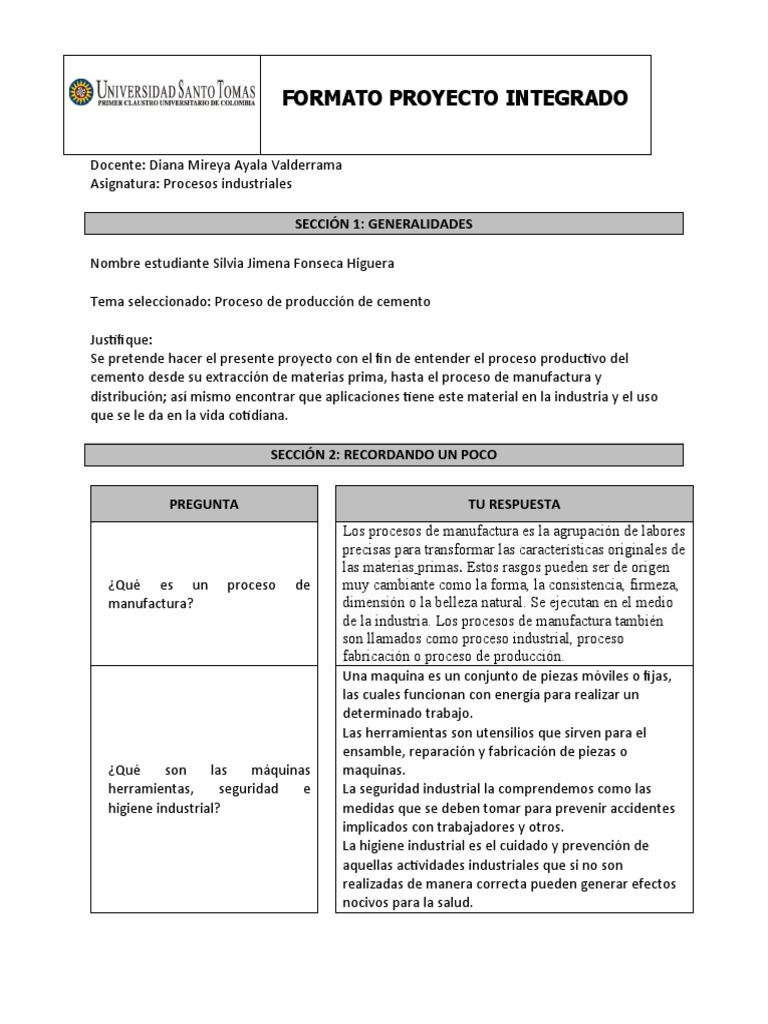 Tema seleccionado: Proceso de producción de cemento