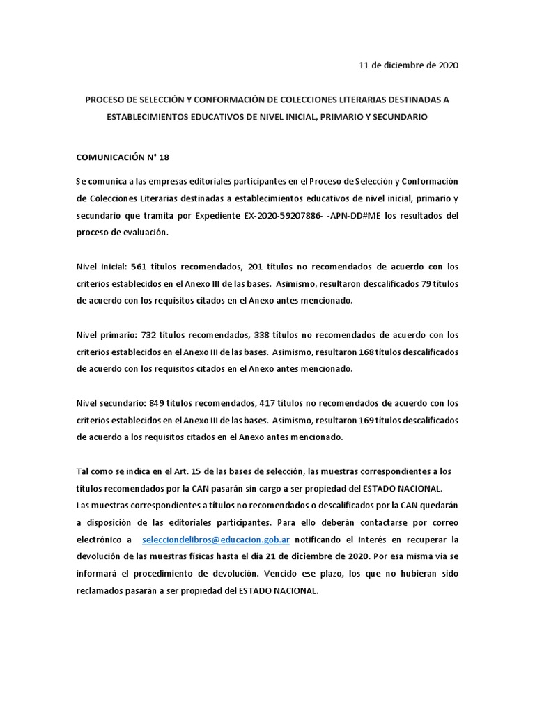 electrónico a selecciondelibros@educacion.gob.ar notificando el interés en recuperar la
