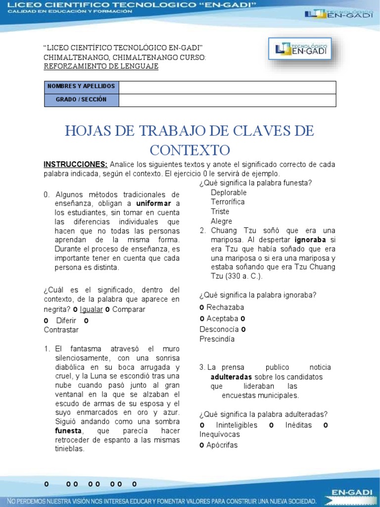 INSTRUCCIONES: Analice los siguientes textos y anote el significado correcto de cada