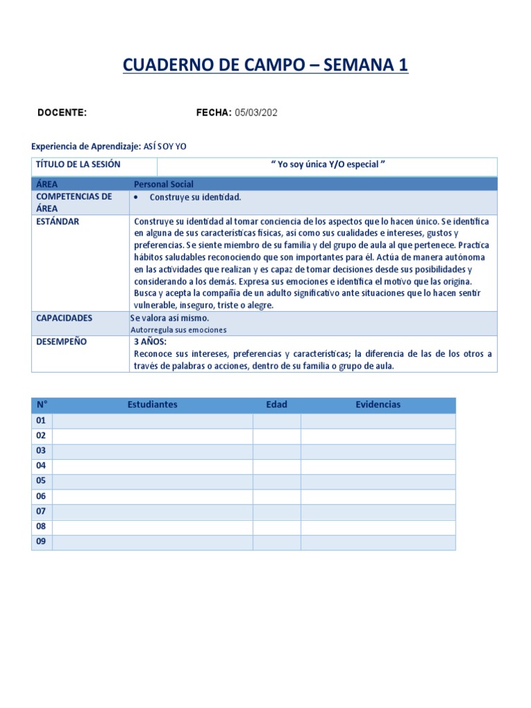 CUADERNO DE CAMPO – SEMANA 1