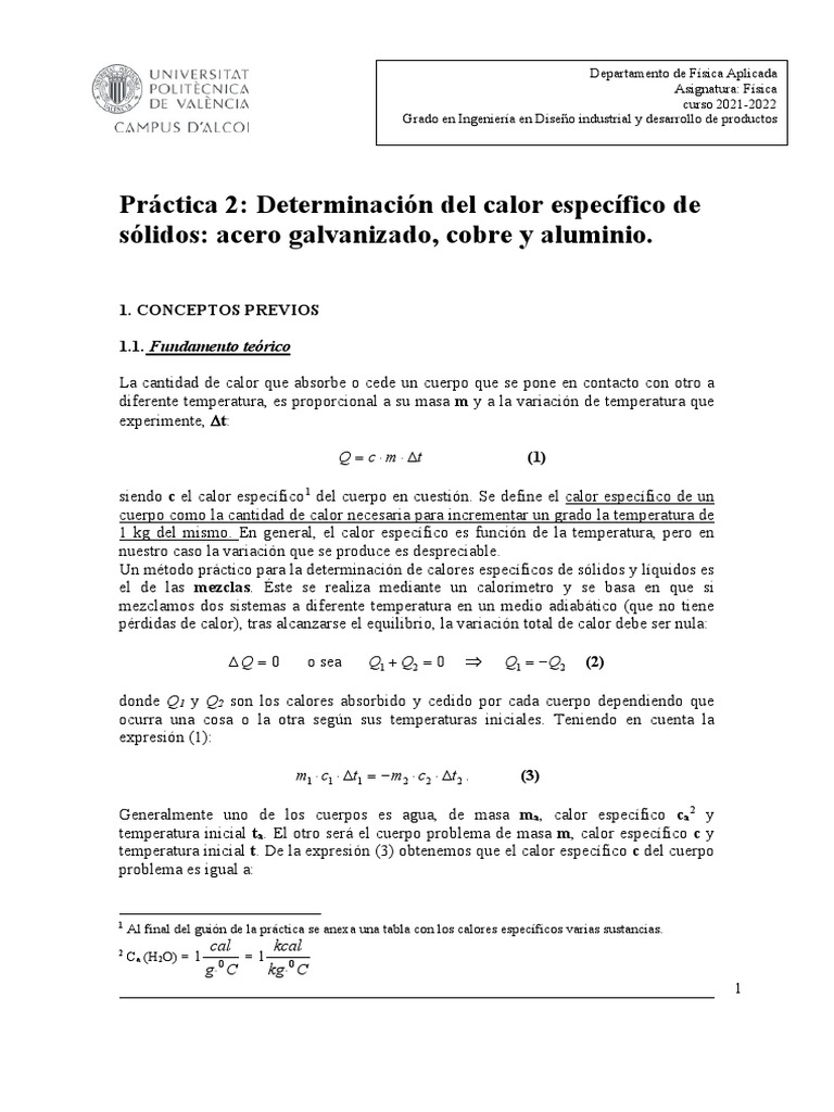 Práctica 2: Determinación del calor específico de