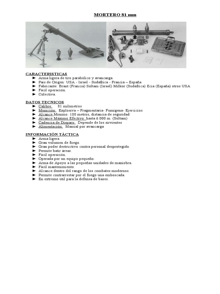 ► Fabricante: Brant (Francia) Soltam (Israel) Milkor (Sudáfrica) Ecia (España) otros USA