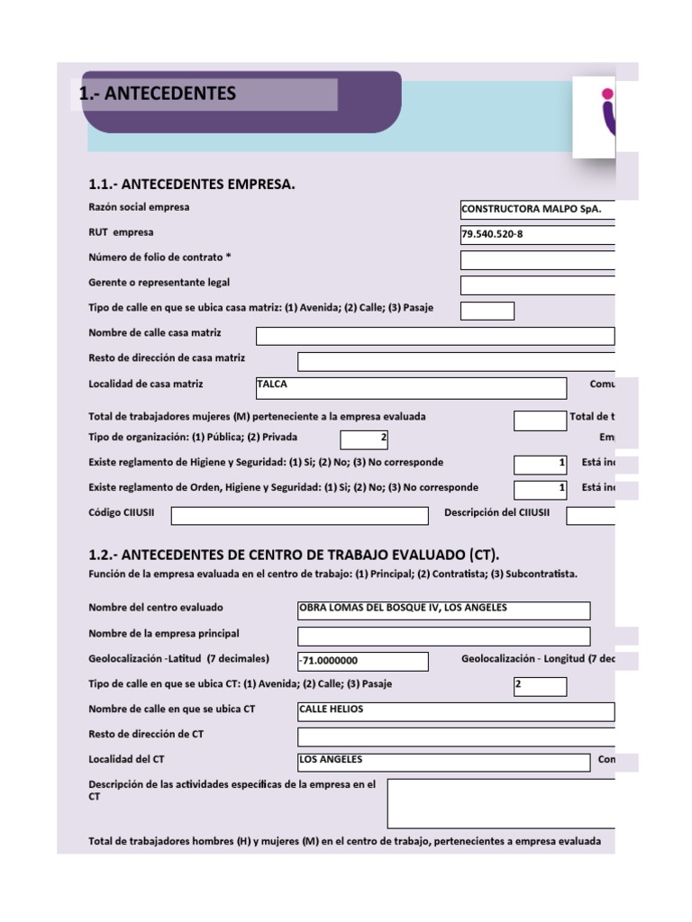 1.2.- ANTECEDENTES DE CENTRO DE TRABAJO EVALUADO (CT).