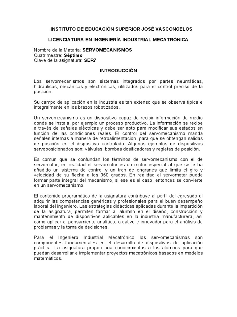 Para el Ingeniero Industrial Mecatrónico los servomecanismos son