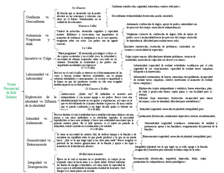 Erikson Exploración de la independiente y con menos apego a sus padres. Busca crear una Difusión (baja autoestima, frustración, incapacidad para tomar