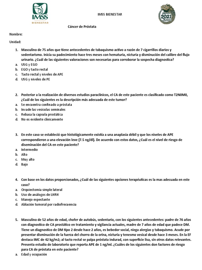 2. Posterior a la realización de diversos estudios paraclínicos, el CA de este paciente es clasificado como T2N0M0,