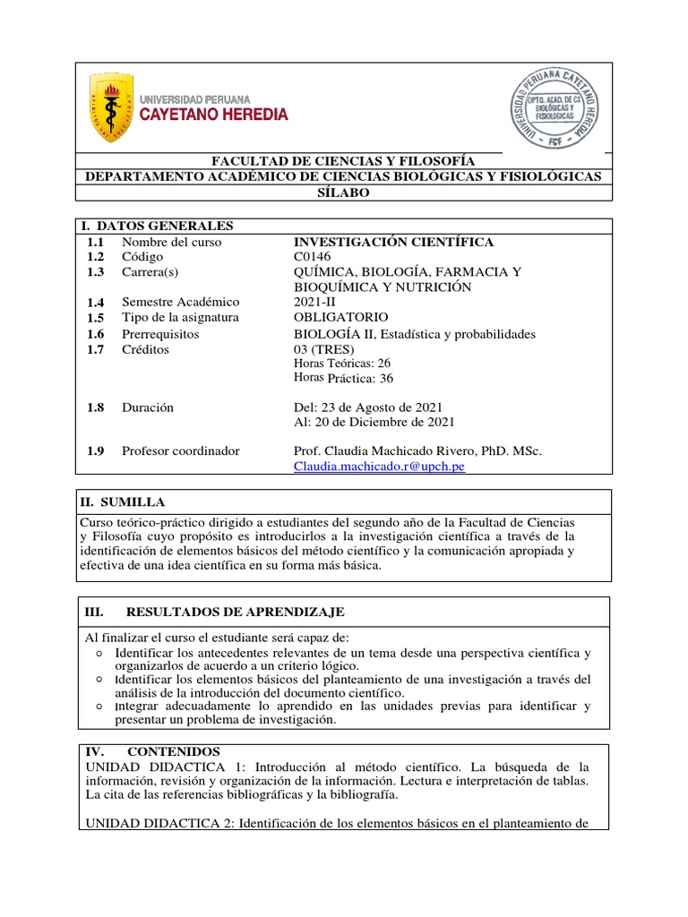1.1 Nombre del curso INVESTIGACIÓN CIENTÍFICA