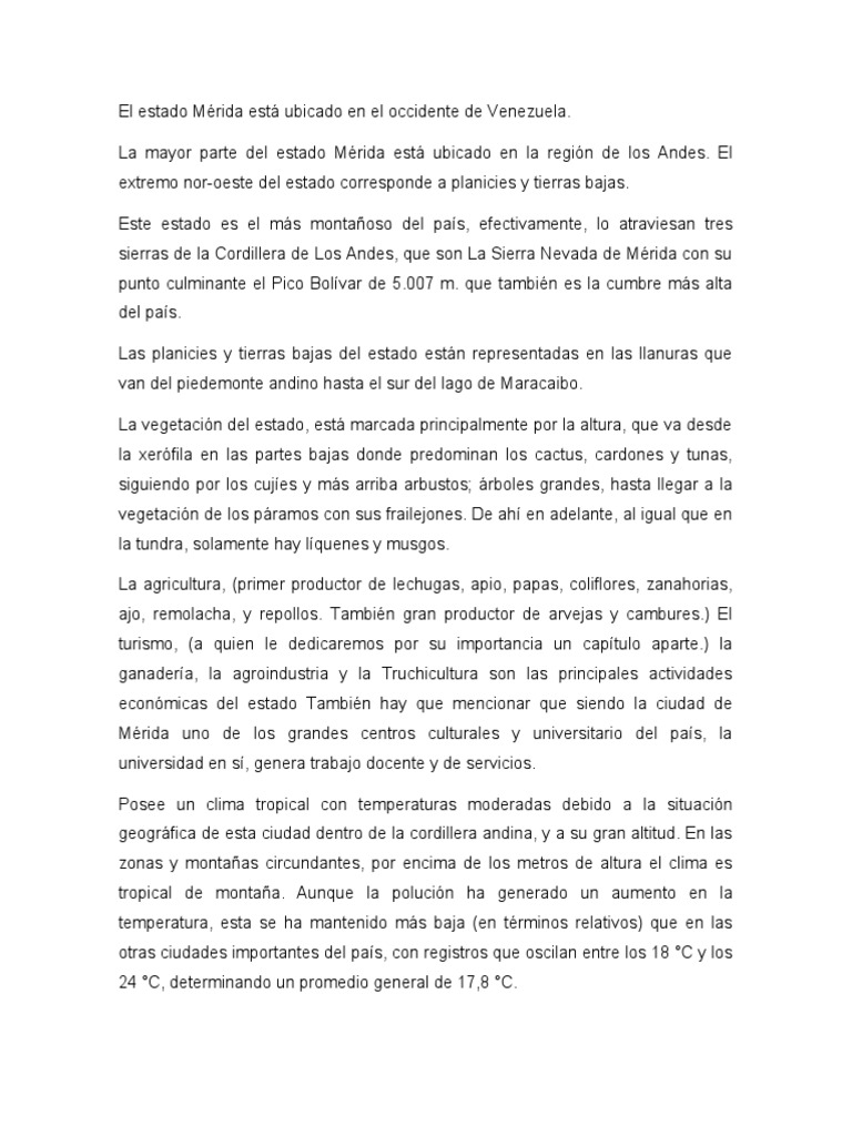 El estado Mérida está ubicado en el occidente de Venezuela.