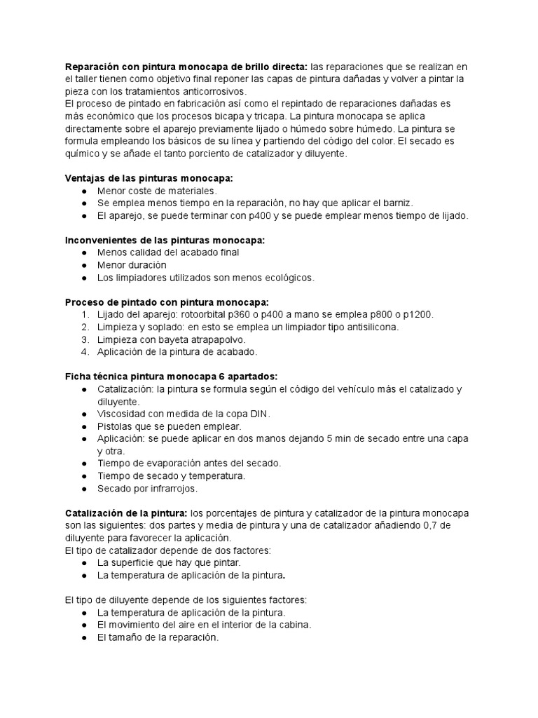 más económico que los procesos bicapa y tricapa. La pintura monocapa se aplica