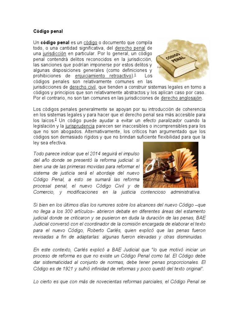 proceso de reforma es que no existe un Código Penal como tal. El Código debe