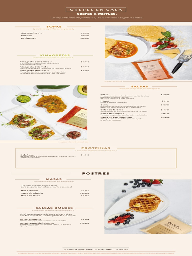 INFORMACIÓN DE ALERGIAS: SI USTED TIENE ALGUNA ALERGIA, INFÓRMESELO A LA PERSONA QUE LO ATIENDE. POR FAVOR, TENGA EN CUENTA QUE EN NUESTRAS COCINAS PREPARAMOS PRODUCTOS QUE CONTIENEN TRIGO, HUEVOS, FRUTOS SECOS, MANÍ, SOYA, LECHE, PESCADOS Y MARISCOS.