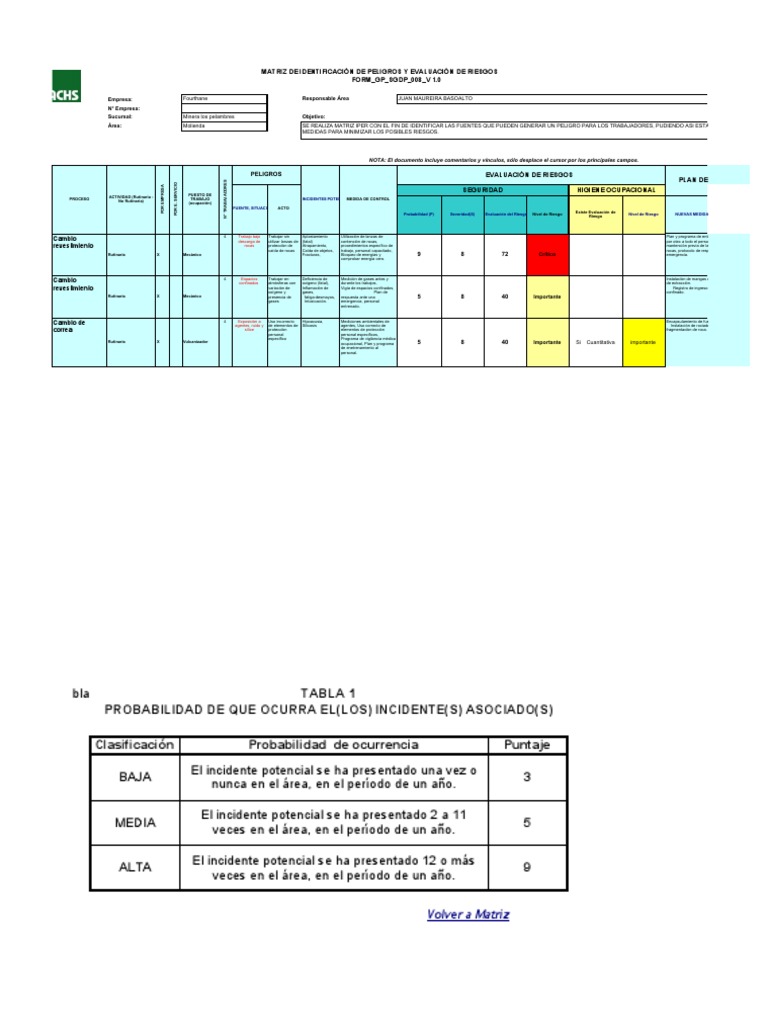 PROBABILIDAD DE QUE OCURRA EL(LOS) INCIDENTE(S) ASOCIADO(S)