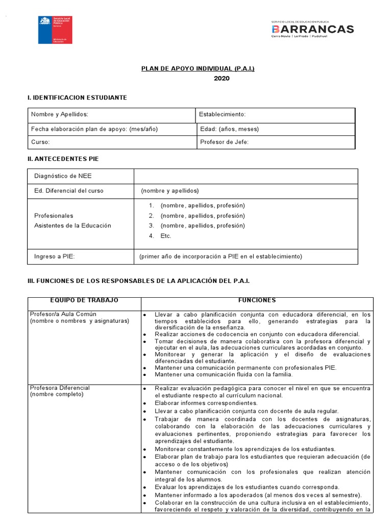 PLAN DE APOYO INDIVIDUAL (P.A.I.