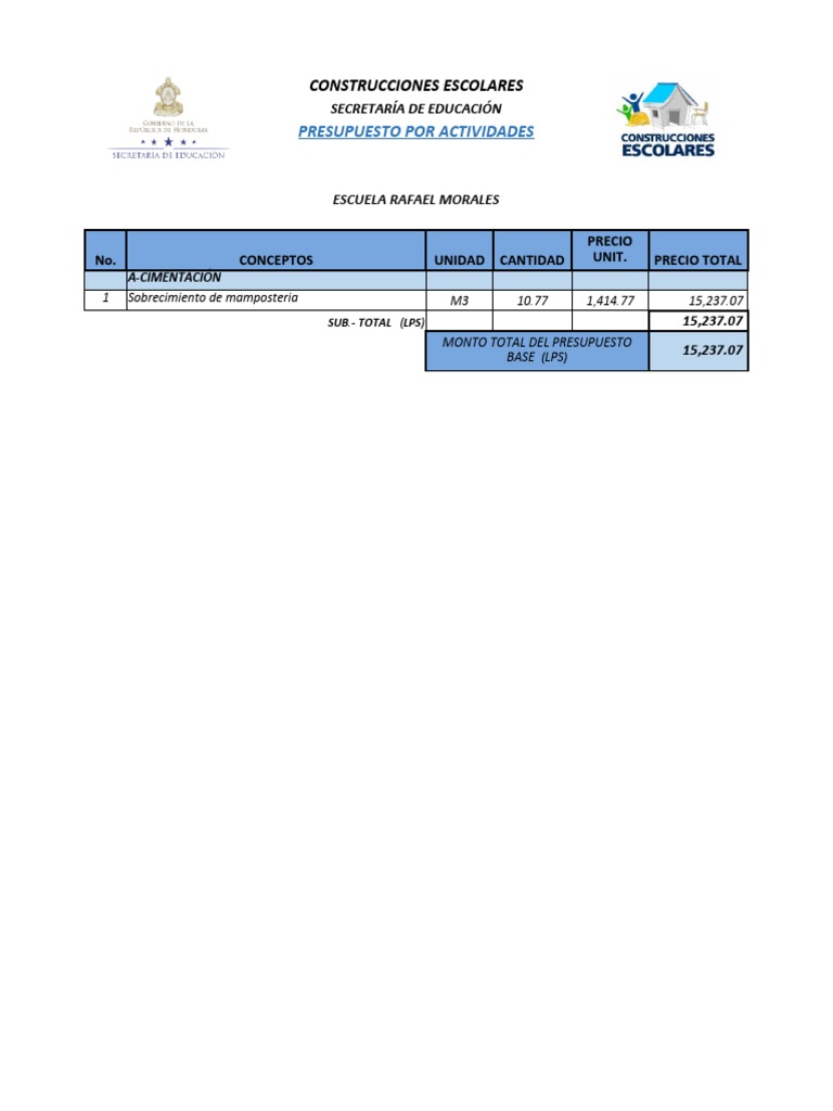 PRECIO TOTAL DE LA ACTIVIDAD 100% L. 1,414.77 L. 15,237.07