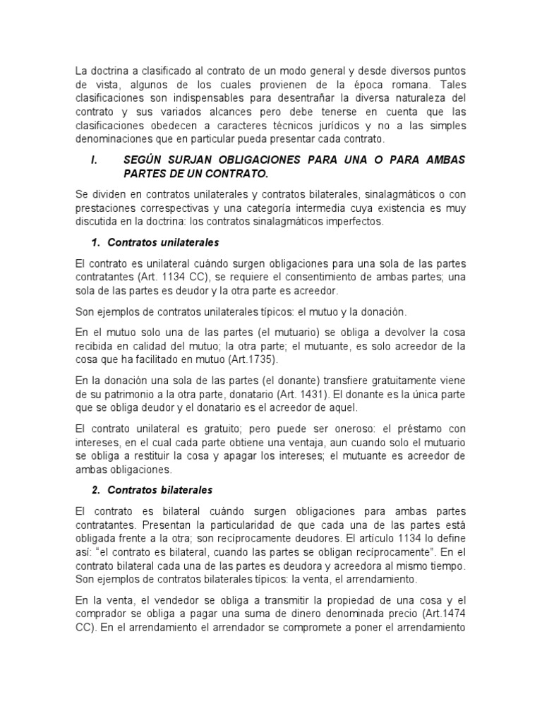 La doctrina a clasificado al contrato de un modo general y desde diversos puntos